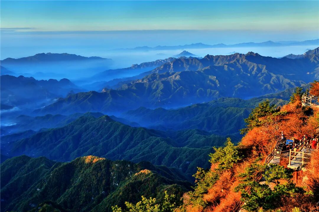 赴傍晚时分,幽蓝色天空下的老君山金殿,金光闪闪,比起白天的庄严肃穆,更多了朦胧与梦幻,简直绝美!夜景开放时间在日落后半小时,在17:30至18:00左右,根据日落时间略有变动,建议提前半小时到达金殿等候。下山后,乘车赴晚上入住酒店休息。