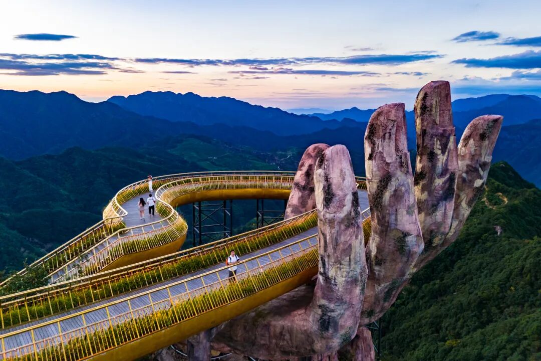 因此也有“黄金桥上走一走,健康财富全都有。佛手里面站一站,从此干啥都是赚”的说法在人群中口口相传…一双巨大的手由山中伸出,托起一座金色的桥,震撼级的美景!游览结束结束行程,返回温馨的家。